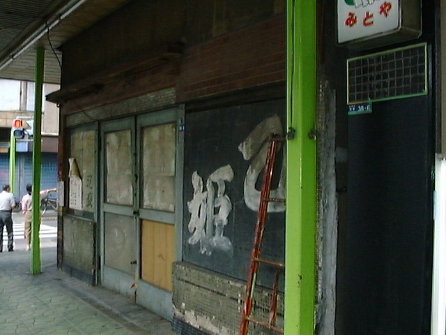 時代は移り,浅草の風もそろりそろりと町を変えていくようです。いろいろ親切にしていただいた「豊」の御夫婦が千葉県に移ってしまい,残念... と思っていたら,長年通った乙姫も息子さんに代を譲り,平成 11 年の正月まで改装中のお休みとなってしまいました(後記:平成 11 年 5 月に新装開店しました)。閉店前,おばさんに記念写真をお願いしたら断わられてしまったけれど,店の外側の写真はこっそりデジカメにしまっておきました。でも,もう黄昏時の薄暗い店の中,ガタピシ扉のガラス越し,千束通りの人の流れをぼおっと眺めながら厚手の欠けたグラスで泡盛をちびりちびりとやることもないんだろうなあ。自分も歳をとるわけだ。